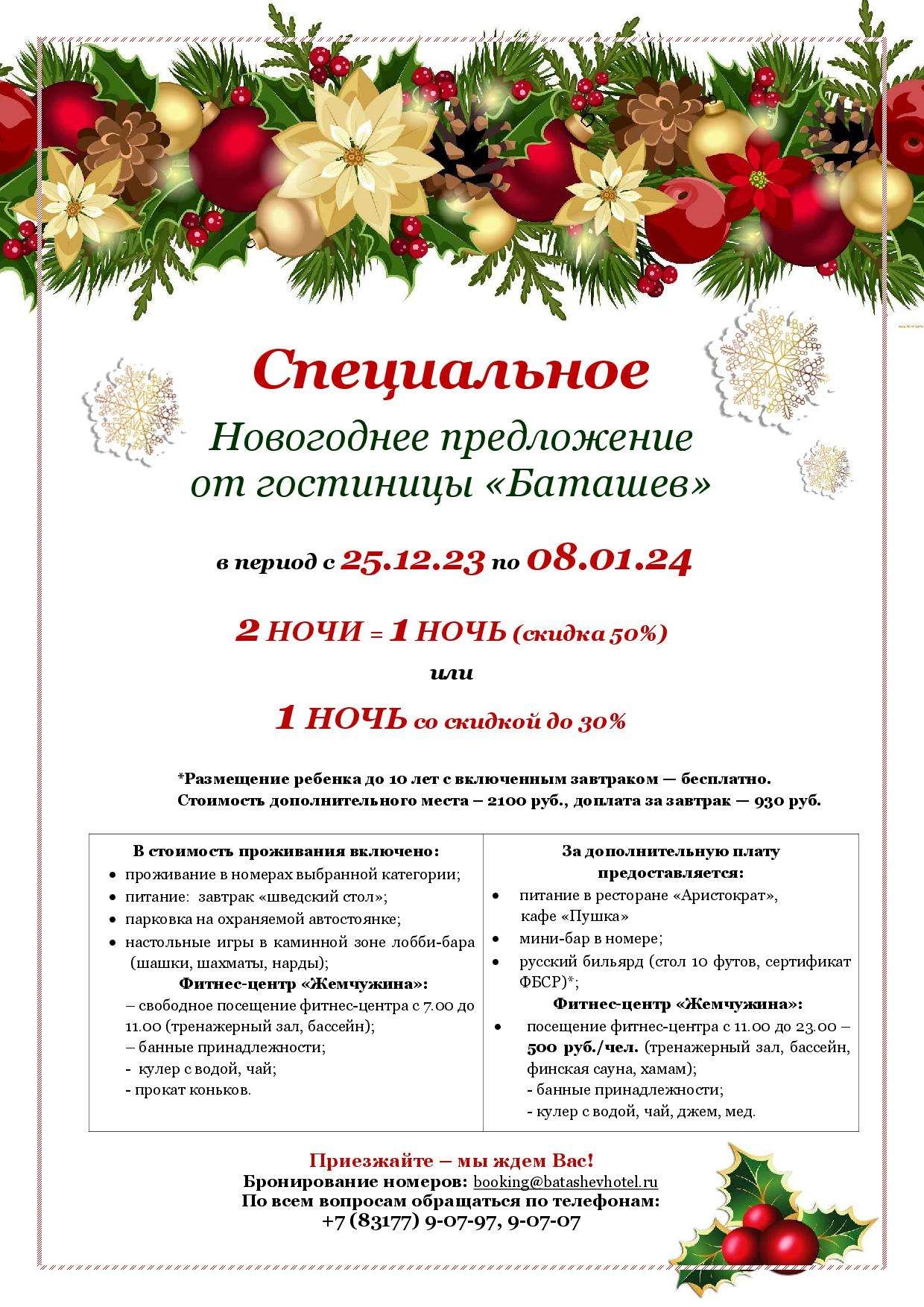 Приглашаем провести незабываемые Новогодние каникулы в гостинице «Баташев»